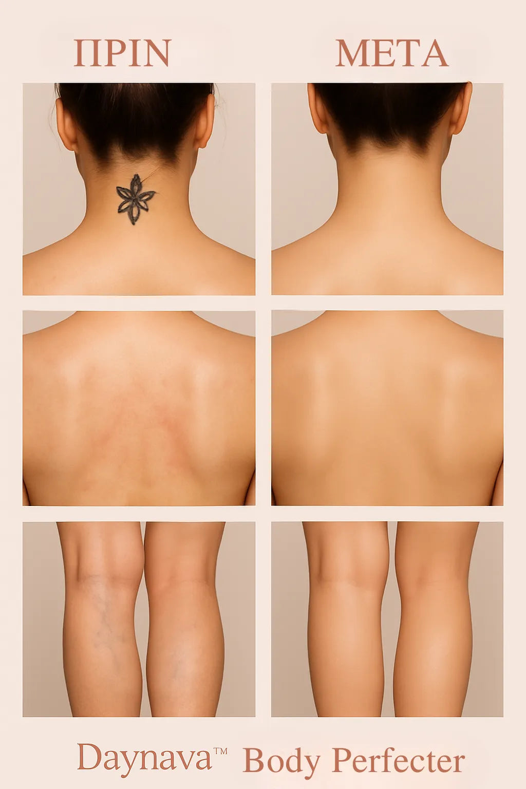 Με την Daynava™ Body Cover Cream, ξαναβρείτε την αυτοπεποίθηση να φορέσετε μπλούζες με ντεκολτέ, φορέματα και off-shoulder ρούχα χωρίς κανέναν δισταγμό. Δέρμα λείο, ομοιόμορφο και φωτεινό… σαν να μην άφησε ποτέ ο χρόνος τα σημάδια του.