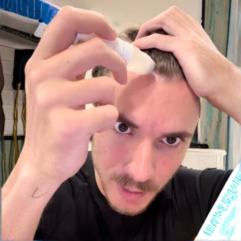1️⃣ Εφάρμοσε απευθείας στις αραιές περιοχές (χωρίστρα, κρόταφοι, κορυφή).