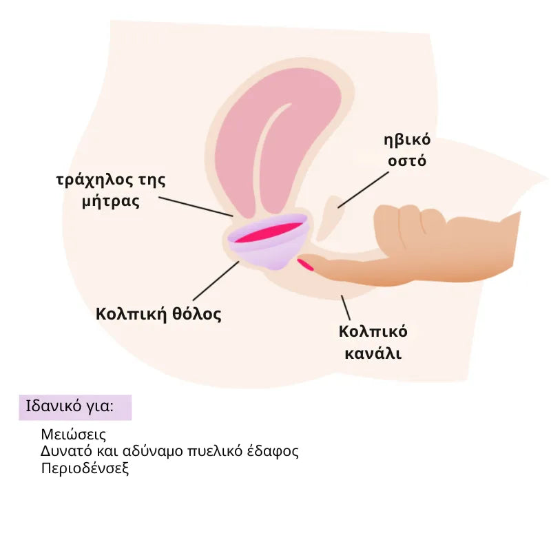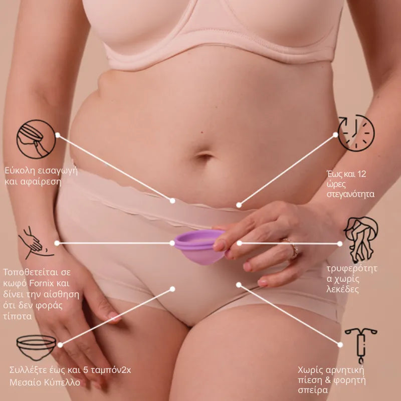 Πολλά συμβατικά προϊόντα περιόδου—όπως τα ταμπόν και τα κύπελλα—τοποθετούνται χαμηλά στον κολπικό σωλήνα, σε περιοχή με πολλές ευαίσθητες νευρικές απολήξεις. Αυτό μπορεί να προκαλέσει πίεση, ξηρότητα, τριβή ή και πόνο. Επιπλέον, συχνά βασίζονται στην αναρρόφηση για να παραμένουν στη θέση τους, κάτι που δεν είναι ιδανικό για όλους.