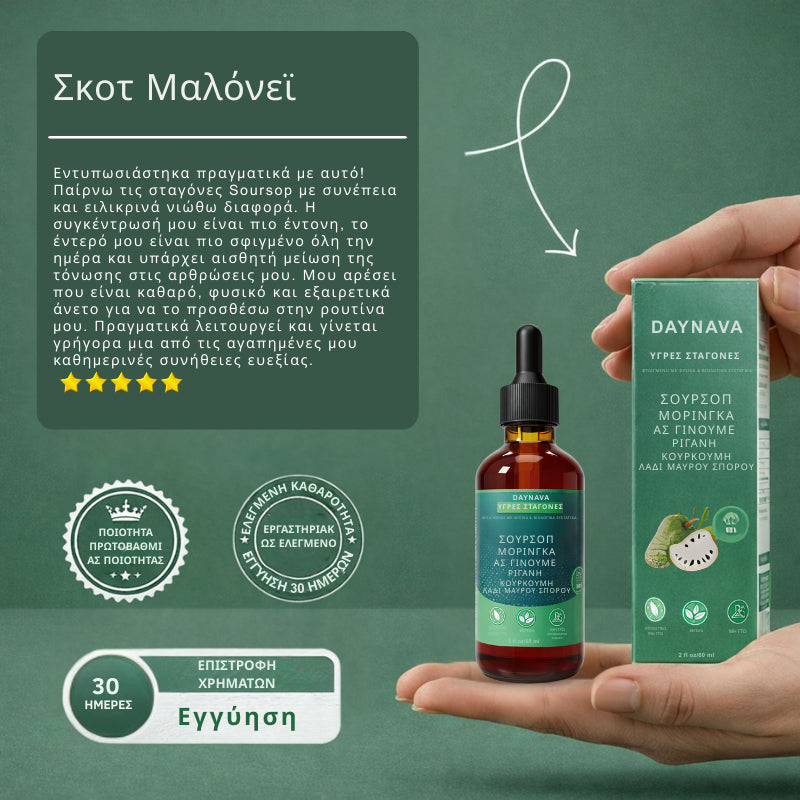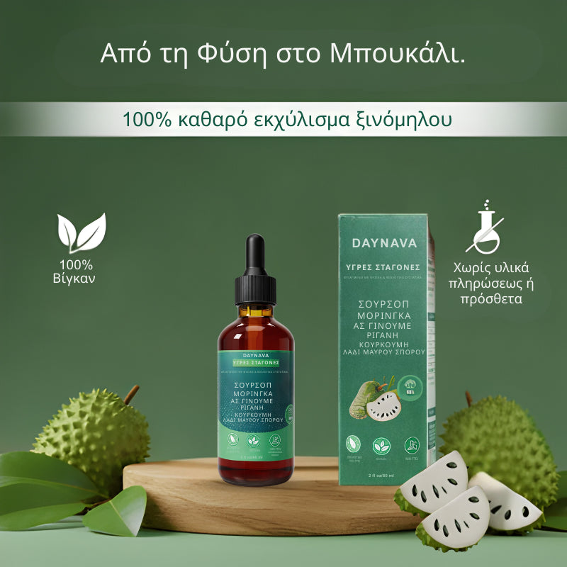 Υποστηρίξτε το ανοσοποιητικό σας. Αποκαταστήστε την ενέργειά σας. Νιώστε ξανά ισορροπημένοι.Προσθέστε τις DAYNAVA Soursop Natural Drops στην καθημερινή σας ρουτίνα σήμερα.